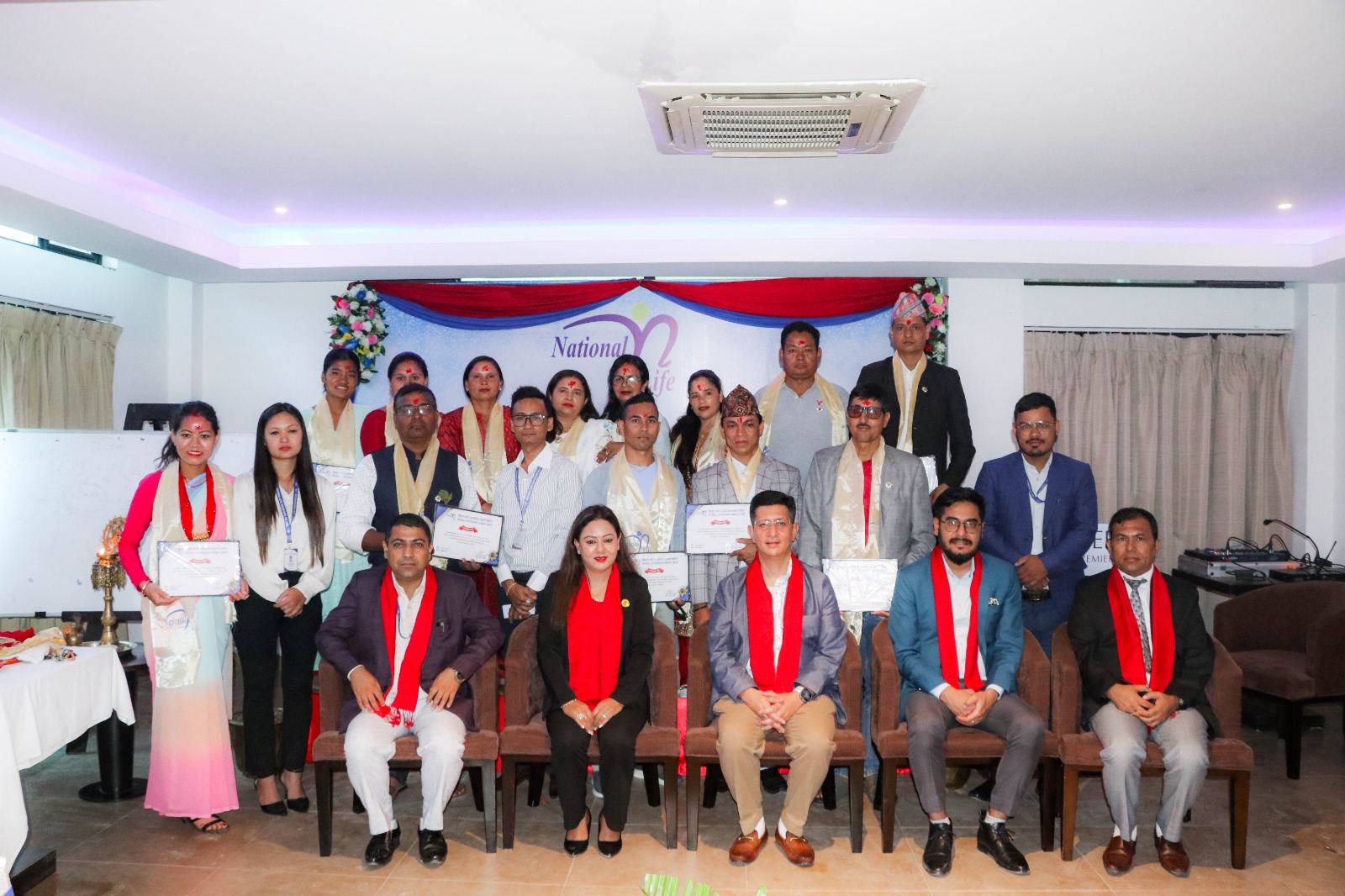 समारोहमा नेशनल रत्न विजेता अभिकर्ताहरुलाई नेशनल लाईफ लोगो अंकित चाँदीको मेडल, सर्टिपिकेट र खादाबाट सम्मान गर्नुहुँदै प्रमुख कार्यकारी अधिकृतज्यूले नेपालको बीमा बजारमा बीमितहरुलाई सबै भन्दा बढि बोनस प्रदान गर्दै आएको यस कम्पनीले पुनः आफ्नो बोनस दरलाई सबै जनाको प्रयासबाट यथावत राख्न सफल भएकोमा अभिकर्ता समूहलाई विशेष धन्यवाद व्यक्त गरे ।