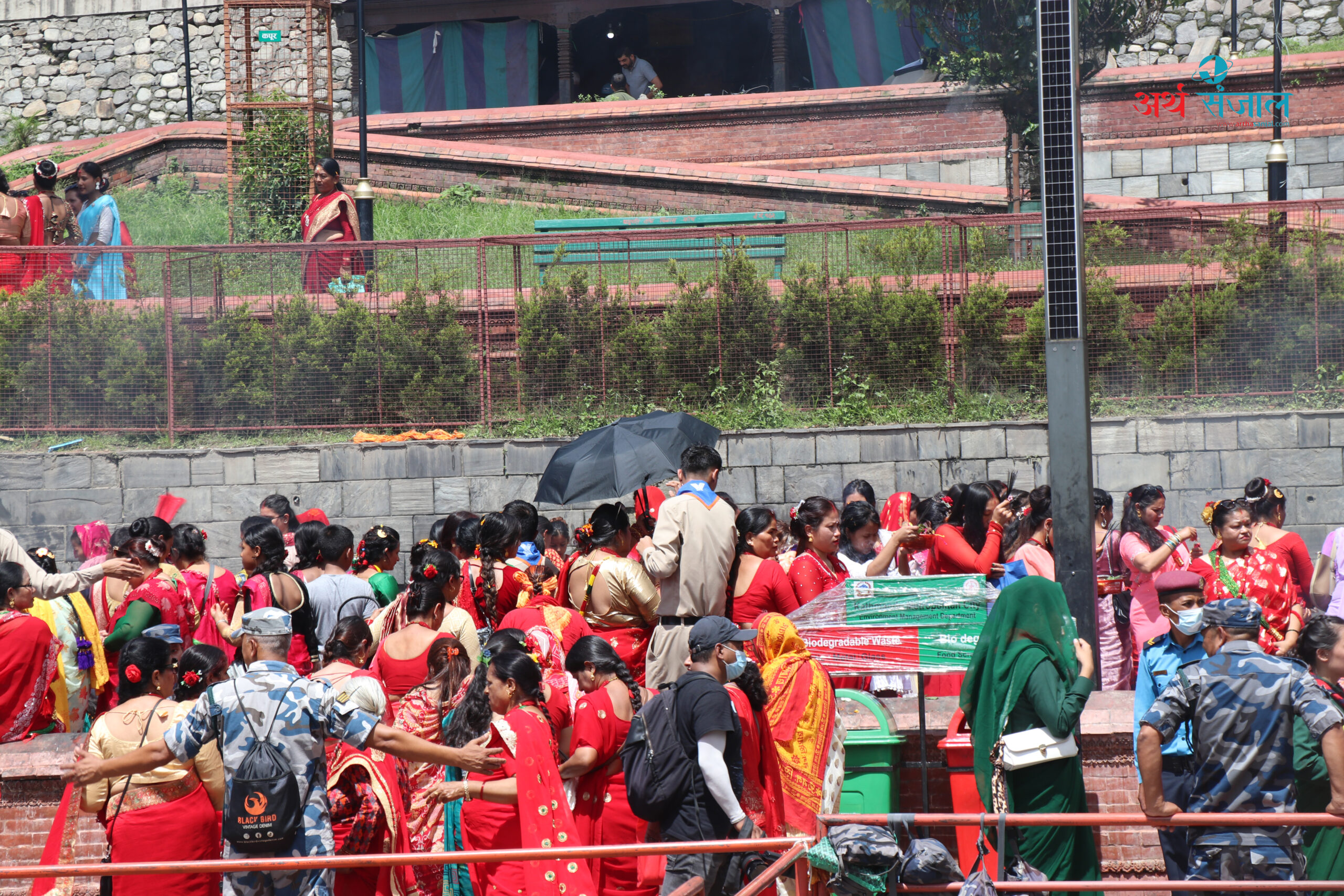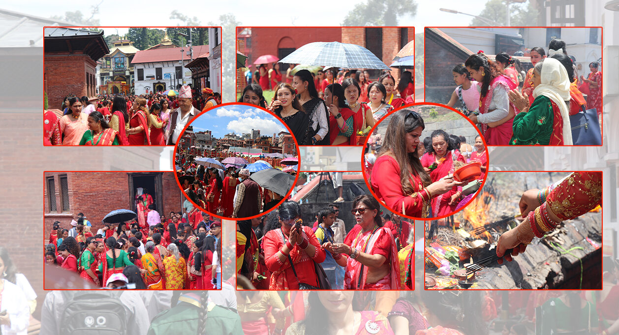 आज बिहानैदेखि काठमाडौंको पशुपतिनाथसहित देशभरका शिव मन्दिरमा तिर्थालु एवं व्रतालु महिलाहरूको भीड छ ।