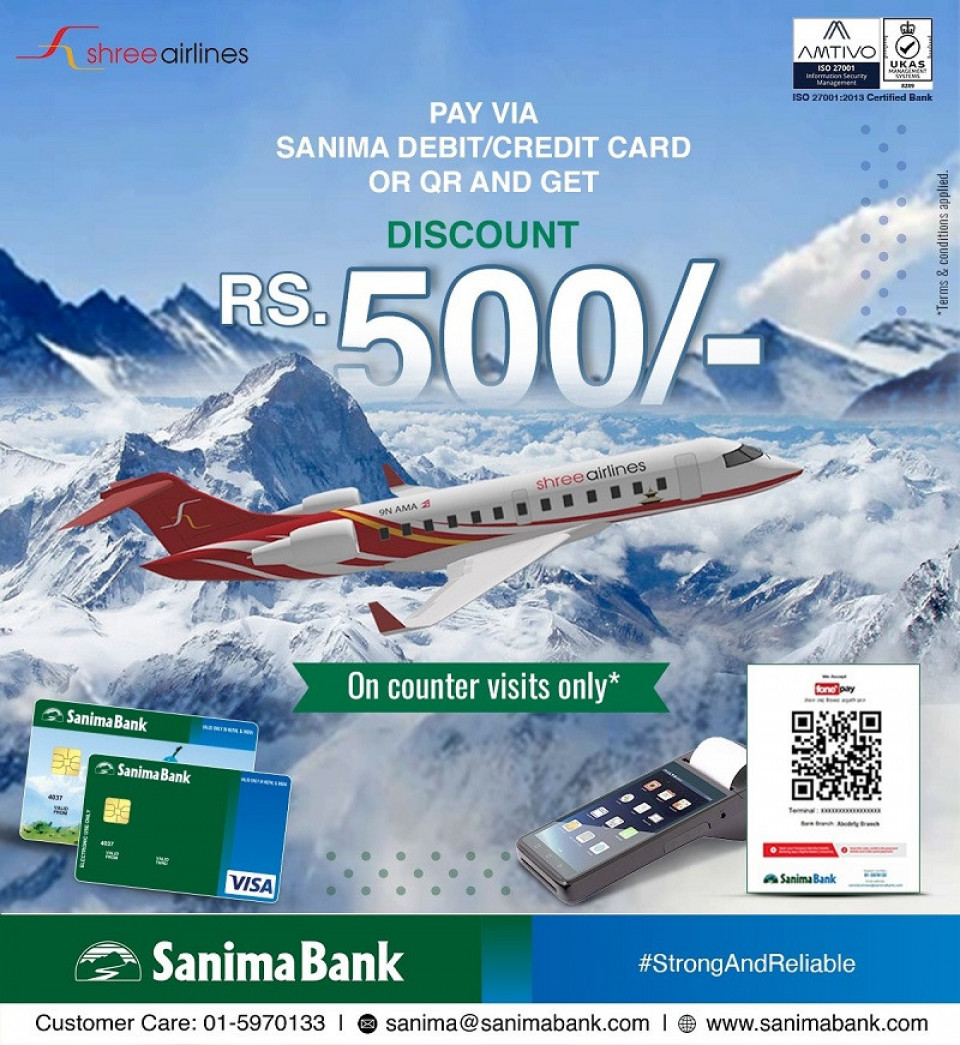 सानिमा बैंकका ग्राहकहरुलाई श्री एयरलाइन्समा विशेष छुट