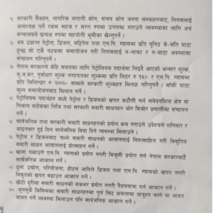 पेट्रोलियम पदार्थहरु मध्ये पेट्रोल र डिजलको खपत कटौती गर्न संवेदनशिल क्षेत्र वा निकाय बाहेकका निजी तथा सरकारी सवारी साधनहरु जोर विजोर प्रणालीमा संचालन गर्ने, सार्वजनिक तथा सरकारी सवारी साधनहरूको प्रयोग कम गराउने उद्देश्यले शनिवार र आइतबार दुई दिन सार्वजनिक बिदा दिने व्यवस्था मिलाउनुपर्ने प्रस्ताव अघि सारेको छ ।