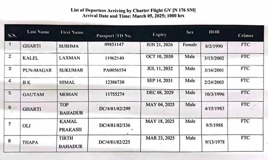 अमेरिकी राष्ट्रपति डोनाल्ड ट्रम्पले दोस्रो कार्यकाल सम्हालेयता नियमित अन्तर्राष्ट्रिय उडानबाट आधिकारिक कागजात नभएका नेपालीलाई घर फर्काइरहेका छन् ।