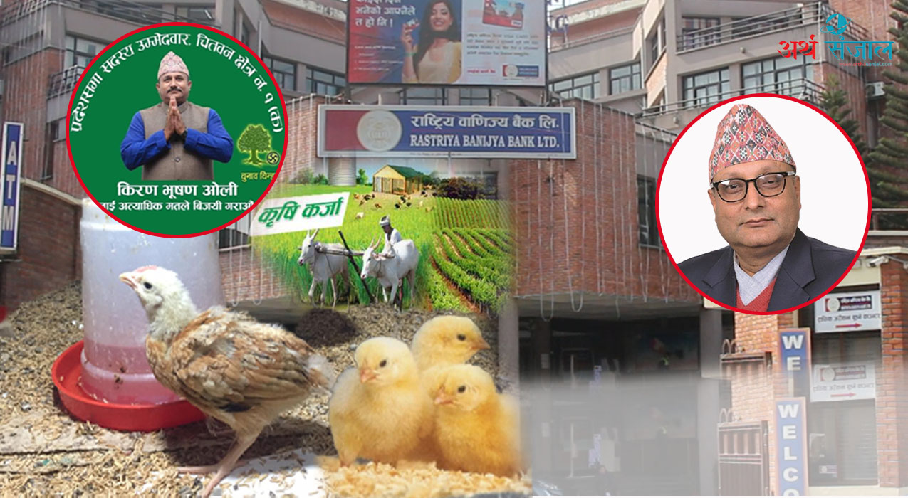 कृषिको नवीनतम उदाहरण चितवनमै रहेको ‘किरण को पोल्ट्री लाई राष्ट्रिय वाणिज्य बैंकले खुखुरा पालनका लागि भन्दै कांग्रेस नेता ओलीलाई ३८ करोड रुपैयाँ कर्जा प्रवाह त गर्यो तर उक्त पोल्ट्री फर्ममा भने एउटा पनि कुखुरा छैनन्। यस बिषयमा बुझ्न नेता हामीले नेता ओलीलाई सम्पर्क गरेका छौँ तर उनले भने उल्टै कर्जा थप नगरेर वाणिज्य बैंकले आँफूलाई डुबाएको दावी गरिरहेका छन्।