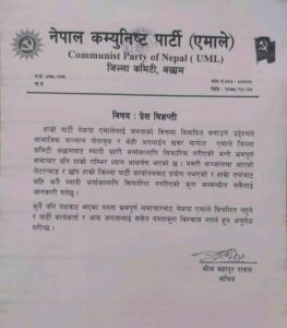 हुँदै नभएको विषयलाई समाचार बनाइएको भन्दै एमाले अछामले खण्डन गरेको हो । एमाले अछामका सचिव भीम बहादुर रावलद्धारा हस्ताक्षरित प्रेस विज्ञप्तिमा नेकपा एमालेलाई जनताको बिचमा विवादित बनाउने उद्देश्यले सामाजिक सञ्जाल फेसबुक र केही संचारमाध्यामले गलत प्रचार गरेको स्पष्ट पारेको छ ।