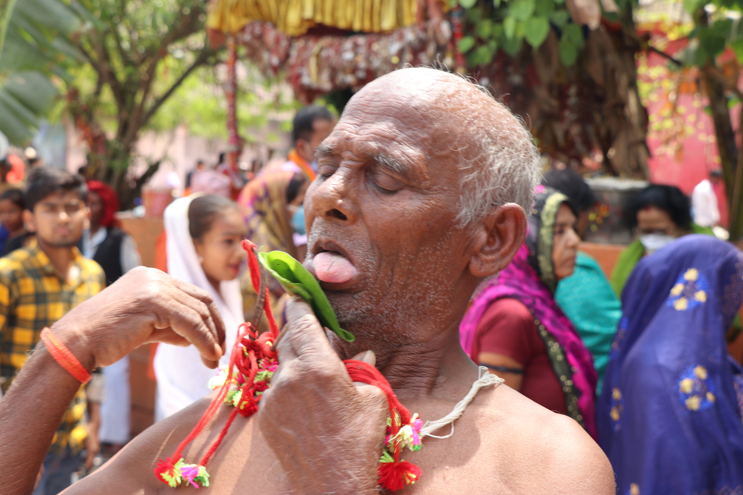 पानको पात र फलामको तिखो त्रिशुलले जिब्रो छेडेर देवीको दर्शन गर्दा पीडा पनि नहुने र रगत पनि नदेखिने बाँके डुडुवा–६ हिमिनियाका ६० वर्षीय बर्मन लोनियाले बताए । उनले भने, ‘५० भन्दा बढी पटक मैले जिब्रो छेडेर देवीकाे दर्शन गरेको छु । रगत पनि बगेको छैन, न त मलाई कुनै पीडा नै भएको छ ।’