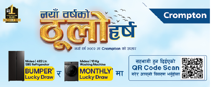 नयाँ वर्षको ठूलो हर्ष अन्तर्गत क्रम्पटन उत्पादनहरु खरिद गर्ने ग्राहकहरुले क्युआर कोड स्क्यान गरी आकर्षक उपहार जित्ने मौका पाउने छन् ।