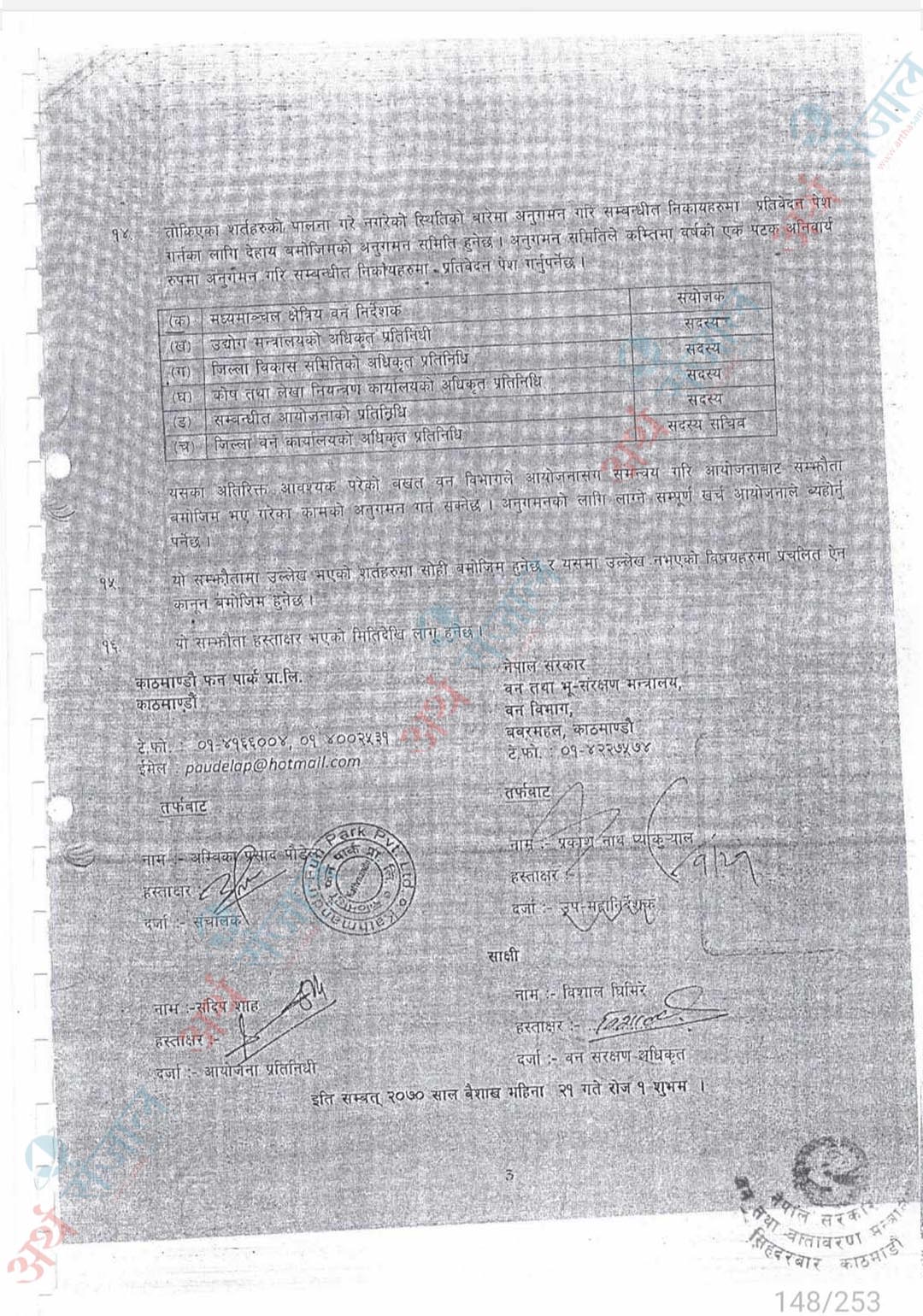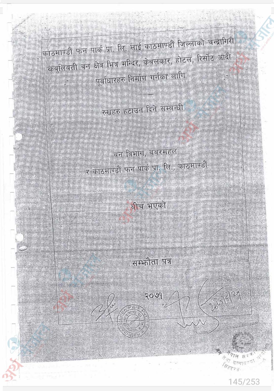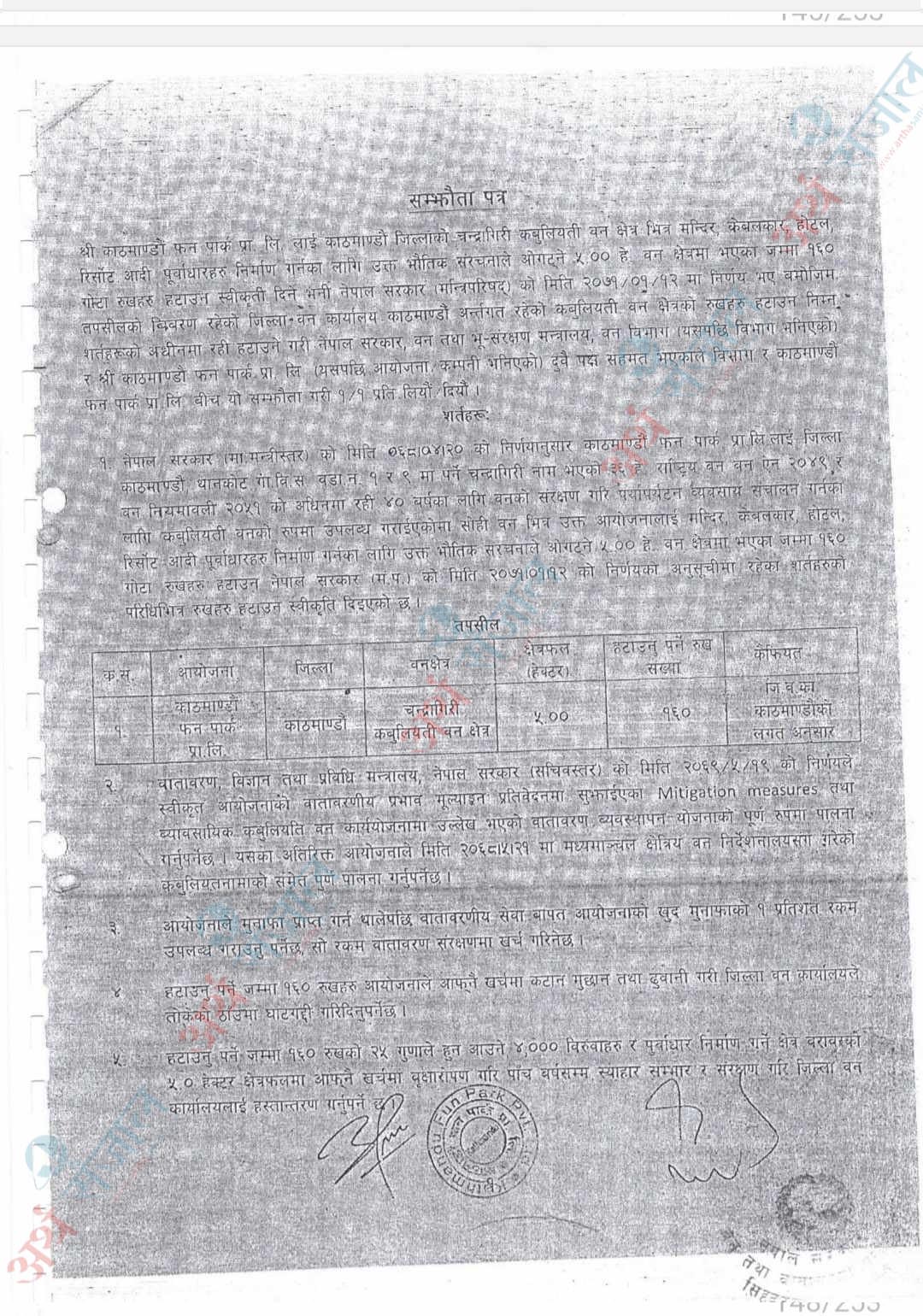 यस्तो छ चन्द्रागिरी हिल्स प्रालि र वन मन्त्रालय बीचको सम्झौता