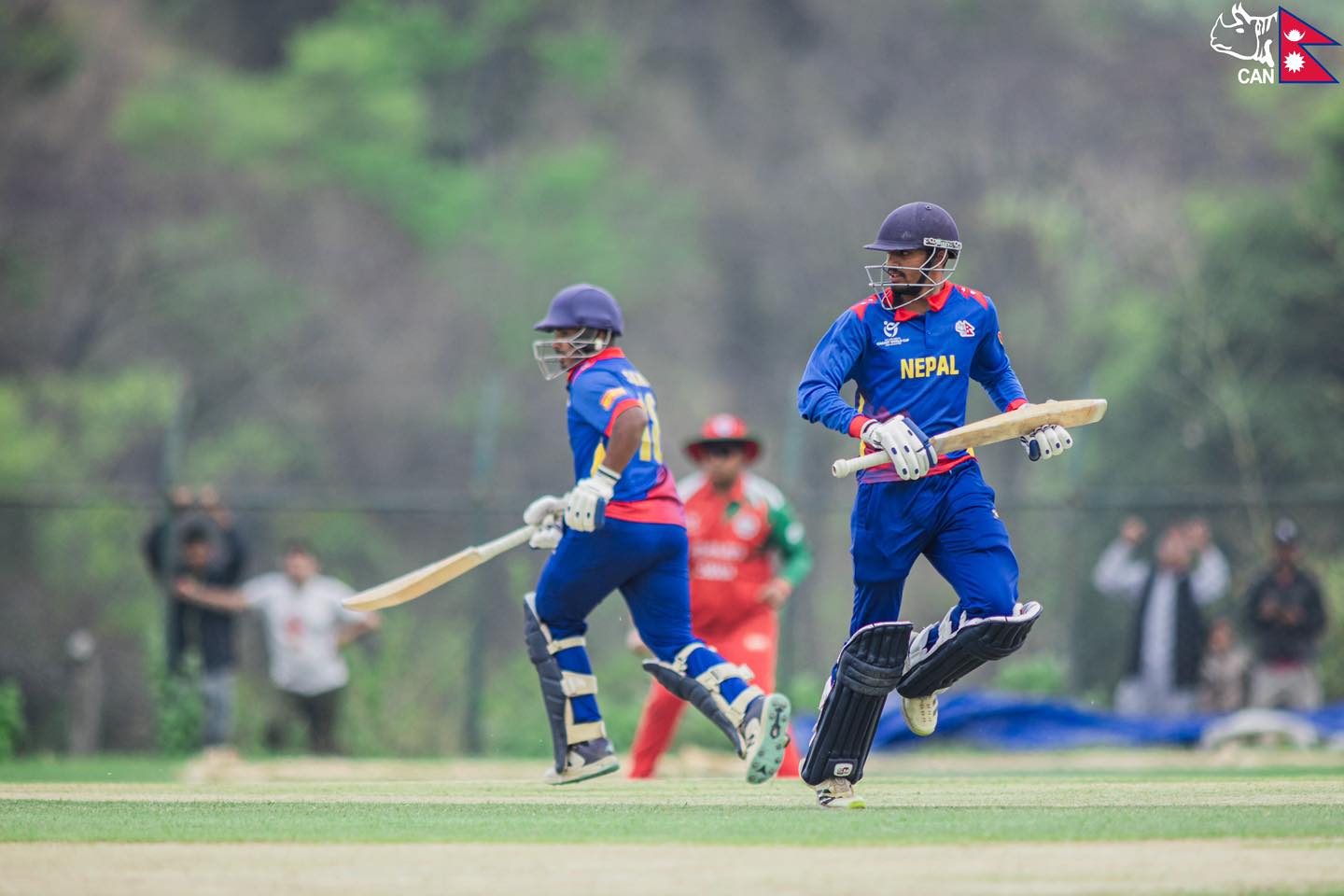 मुलपानी क्रिकेट मैदानमा हङकङले दिएको ११६ रनको सामान्य लक्ष्य नेपालले १२.३ ओभरमा १ विकेट मात्र गुमाएर पूरा गरकाे हाे । ओपनर साहिल पटेल ४२ तथा कप्तान नरेन भट्ट ३९ रनमा नटआउट रहे । त्यसअघि निरज यादवले २३ रन बनाए ।