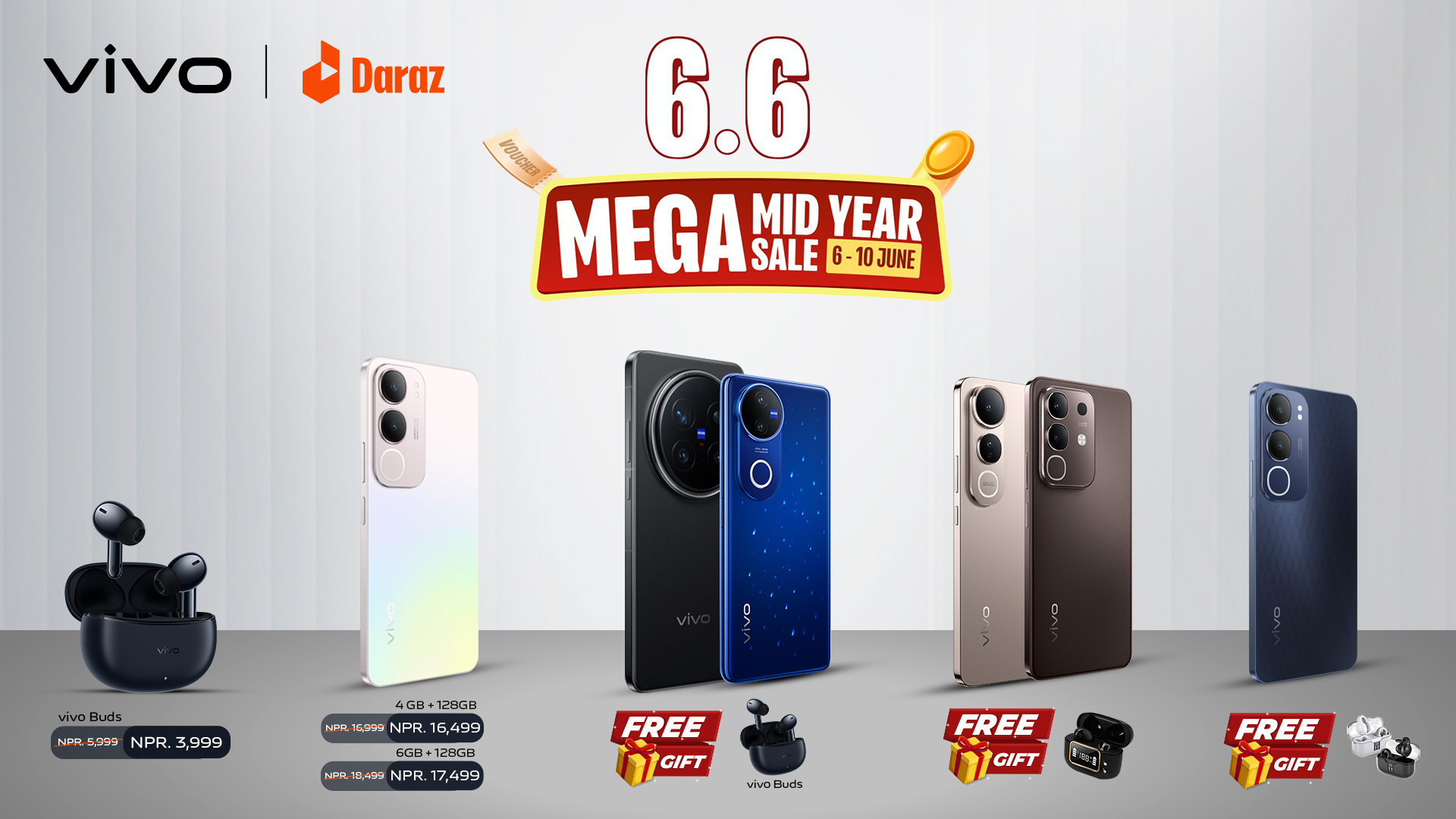 पाँच दिनको यस सेल अवधिमा, दराजमा भिभो स्मार्टफोनको हरेक खरिदमा भिभो बड्स, एप्रो १० इयरबड्स, र क्लिपबड्सजस्ता उच्च गुणस्तरका अडियो सामानहरू निःशुल्क उपहारस्वरूप प्राप्त गर्नेछन् ।