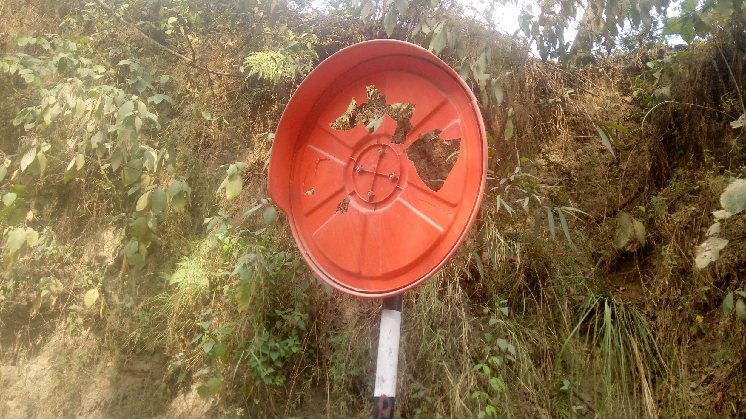 त्यसैगरी, यसै वडाभित्र पर्ने भुत्याहा खोला नजिकैको सडक घुम्तीमा रहेको मिरर पनि क्षतिग्रस्त छ । ऐनाको सबै सिसाको भाग फुटेर खेर गएको छ । मिररको पछाडिको प्लाष्टिकको भाग (कभर) र स्ट्याण्डमात्रै बाँकी छ । सडकखण्डमै पर्ने भकुण्डेस्थित सडक घुम्तीमा राखिएको मिरर पनि क्षतिग्रस्त छ । सार्वजनिक सम्पत्ति संरक्षणका लागि सबै नागरिक जुट्नुपर्ने सुन्दरबजार नगरपालिका–८, का वडाअध्यक्ष कृष्णकान्त अधिकारीले बताए । ‘आफ्नो वडाअन्तर्गत पर्ने विभिन्न सडक घुम्तीमा राखिएका ऐनामध्ये ३ वटा ऐना काम नलाग्ने गरी टुट्फुट भएको छ,’ उनले भने, ‘सार्वजनिक सम्पत्तिको संरक्षणमा स्थानीयले पनि चासो देखाउनु आवश्यक छ ।’