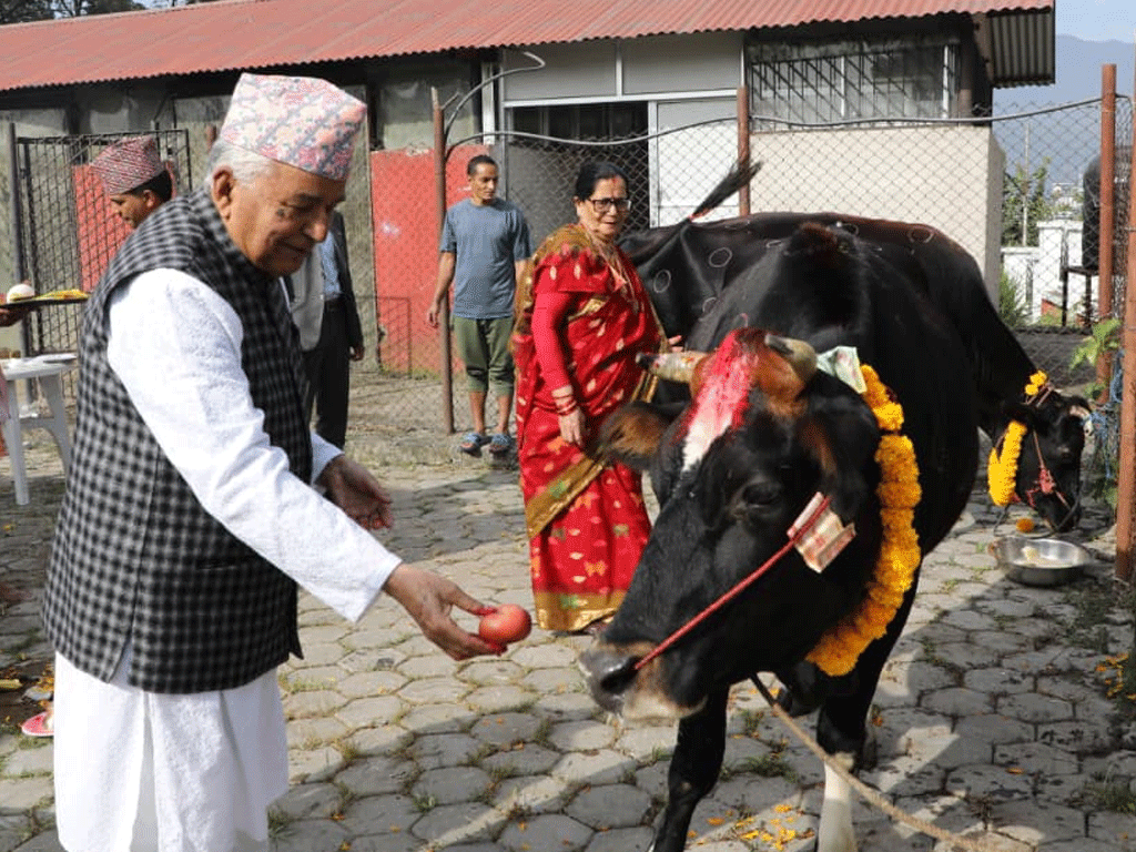 राष्ट्रपति पौडेलले शीतल निवासमा विधिपूर्वक गाईको पूजा गरेका हुन् । उनले गाईको पूजा गरी खानेकुरा खुवाएका थिए।