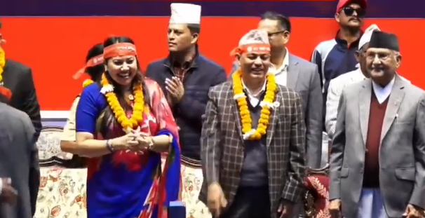 उनीहरूलाई एमाले अध्यक्ष ओलीले एमालेको चुनाव चिह्न सुर्य प्रदान गरेका थिए भने उनीहरुले कलम चिह्न अध्यक्ष ओलीलाई प्रदान गरेका थिए ।