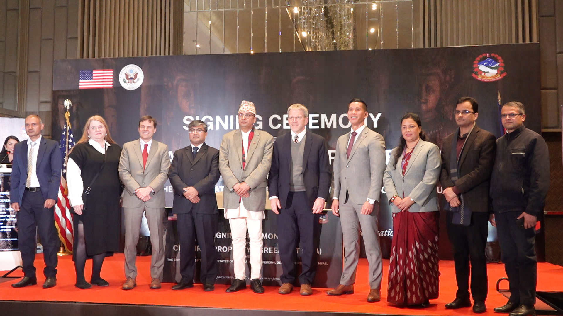 काठमाडौं । संयुक्त राज्य अमेरिकी सरकार र नेपाल सरकारबीच सांस्कृतिक सम्पत्ति सम्झौतामा हस्ताक्षर भएको छ । बिहीबार काठमाडौंमा एक विशेष कार्यक्रमको आयोजना गर्दै उक्त सम्झौतामा हस्ताक्षर भएको हो ।