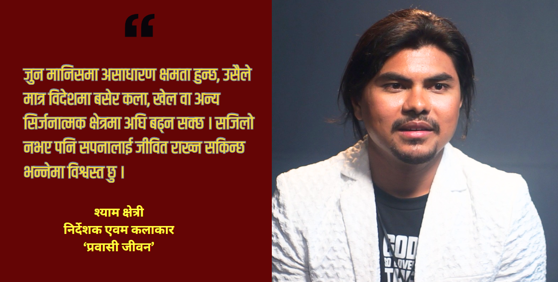 भुटानी मूलका नेपाली भाषी कलाकार श्याम क्षेत्री, जो अमेरिका बसोबास गर्दै आएका छन् । उनी नेपाली चलचित्र क्षेत्रमा देखिदै छन् । उनको यो यात्रा केवल कलाकारिता होइन, पहिचान, संघर्ष र मानसिक स्वास्थ्यको कथासँग जोडिएको छ ।