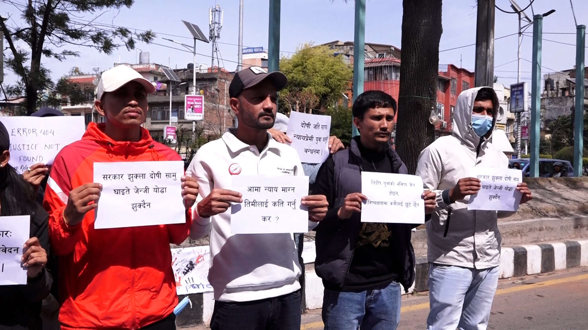 उनीहरू कार्की आयोगको पूर्ण प्रतिवेदन खोइ ? भन्दै आँखामा कालोपट्टी बाँधेर प्रर्दशनमा छन् । उनीहरुले जनताको अधिकारःकार्की आयोगको प्रतिवेदन सार्वजनिक गर, प्रतिवेदन हरायो सरकार किन डरायो, सरकार झुक्ला दोषिसामु घाइते जेनजी योद्धा झुक्दैन र आमा न्याय माग्न तिमिलाई कति गर्नु कर लगायतका प्ले कार्ड बोकेर प्रदर्शन गरेका छन् ।