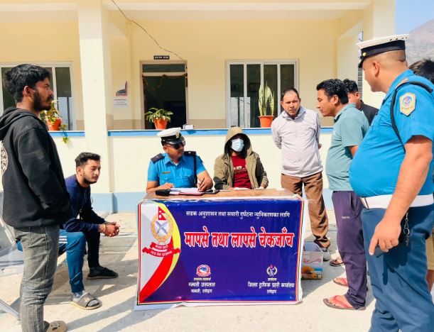रामेछाप प्रहरीले सुरु ग¥यो सार्वजनिक सवारी चलाकको लापसे जाँच