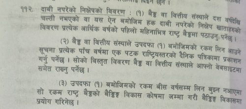 त्यसैगरी उपदफा (३ ) मा उपदफा (१) बमोजिमको रकम बीस वर्षसम्म लिन बुझ्न नआएमा सो रकम राष्ट्र बैंकको बैङ्गिङ्ग विकास कोषमा जम्मा गरी बैङ्गिङ्ग विकासमा प्रयोग गरिनेछ स्पष्ट व्यवस्था छ।