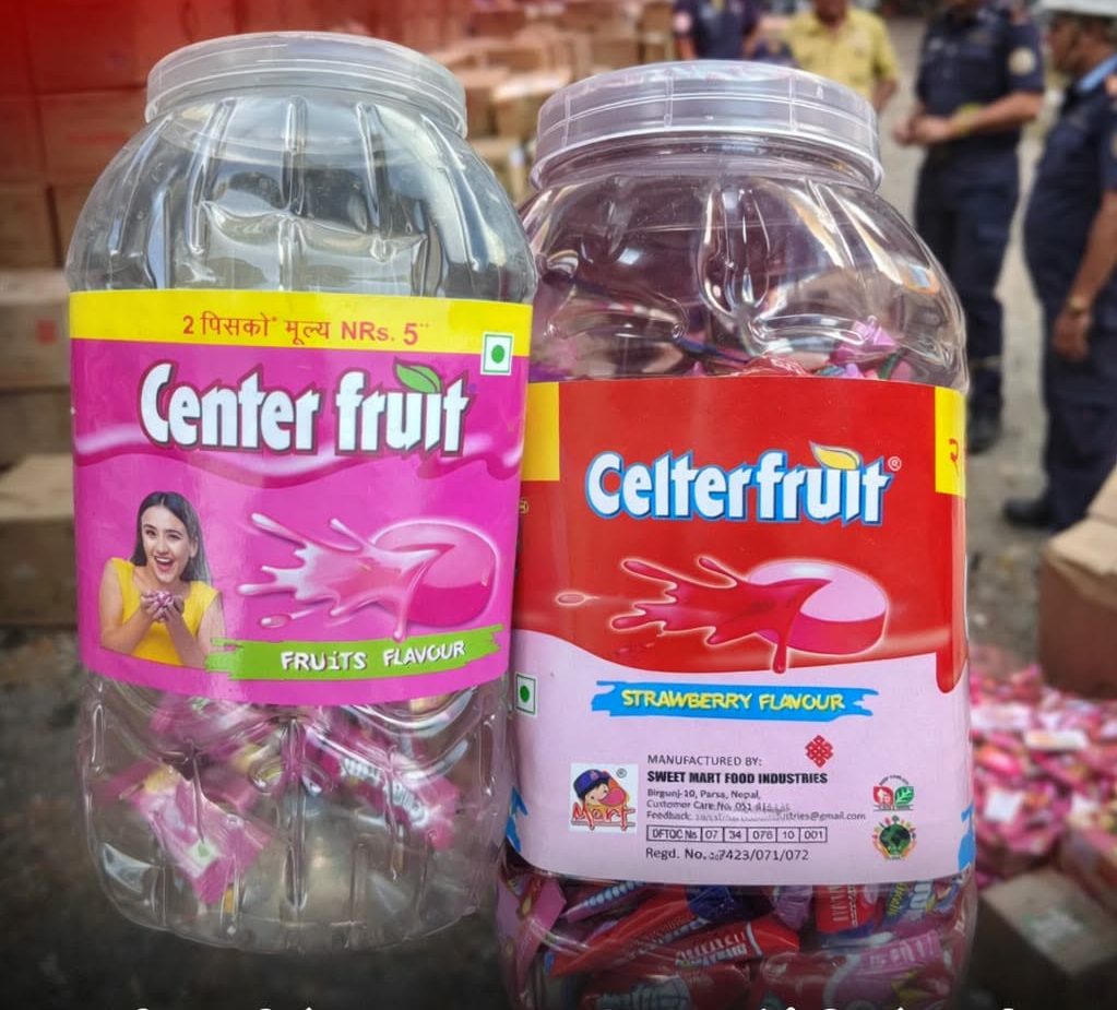 इटालीस्थित कम्पनी Perfetti Van Melle S.p.A. को नाममा नेपालमा दर्ता रहेको “Center Fruit” ट्रेडमार्कसँग अत्यन्त मिल्दोजुल्दो उत्पादन फेला परेपछि उक्त सामग्री जफत गरिएको हो।