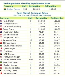 आज ओमानी रियाल १ को खरिददर २९३ रुपैयाँ २४ पैसा रहेको छ । यूएई दिर्हाम १ को खरिददर ३० रुपैयाँ ६५ पैसा र बिक्रीदर ३० रुपैयाँ ८२ पैसा छ ।मलेसियाको रिंगिट एकको खरिददर २६ रुपैयाँ ८९ पैसा बिक्रीदर २७ रुपैयाँ ०३ पैसा पुगेको छ । कुवेती दिनार १ को खरिददर ३७० रुपैयाँ ०३ पैसा र बिक्रीदर ३७२ रुपैयाँ रहेको छ ।