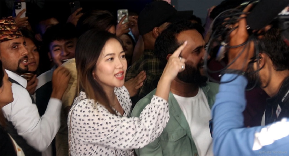 धेरै मानिसहरूको हुलमा झापड हान्दै चोरी औंलो देखाउँदै खबरदारी गरेकी छन् मिरुनाले । सिभिल मलमा सोमबार बिहान साढे ११ बजेको शो हेर्न फिल्मका सबै कलाकारको समूह गएको थियो । सौगात मल्ल, दयाहाङ राई लगायत कलाकार पनि थिए । फिल्म सकिँदा साढे २ बजेको थियो । सबै हुल बाँधेरै कलाकारलाई घेर्दै बाहिर निस्कँदै थिए ।