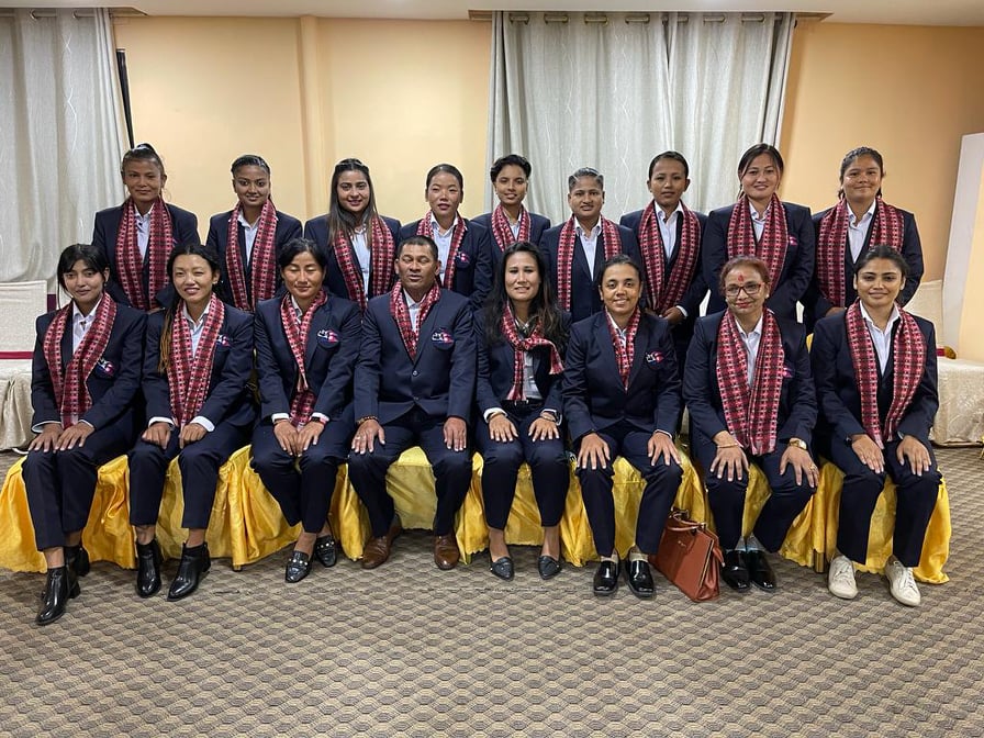 रुबिना क्षेत्री बेलबासे (कप्तान), सीता रानामगर, डली भट्ट, करुणा भण्डारी, इन्दु बर्मा, सरिता मगर, ज्याति पाण्डे, सरस्वती चौधरी, काजल श्रेष्ठ, सबनम राई, कविता कुँवर, अप्सरी बेगम, कविता जोशी र सङ्गीता राई ।