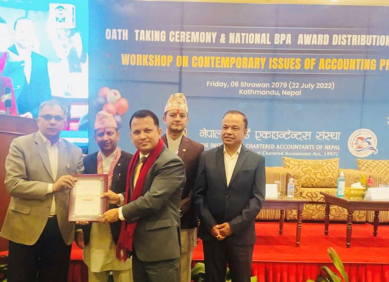नेपाल चार्टर्ड एकाउन्टेन्ट्स संस्थाले Best Presented Annual Report Award विभिन्न ५ विधामा प्रस्तुत गरेको थियो । विधाहरुमा १. बैंकिङ्ग क्षेत्र (बाणिज्य बैंक समूह) २. वित्तीय क्षेत्र(विकास बैंक र वित्त कम्पनी समूह ) ३. बीमा क्षेत्र ४. सार्वजनिक निकाय ५. सामान्य क्षेत्र रहेका छन् । विकास बैंक र वित्त कम्पनीहरु मध्येबाट मुक्तिनाथ विकास बैंकले वित्तीय क्षेत्र विधाको सर्वोकृष्ट पुरस्कार प्राप्त गरेको छ । नेपाल चार्टर्ड एकाउन्टेन्ट्स संस्थाले संस्थाको नवनिर्वाचित अध्यक्ष र उपाध्यक्षको सपथ ग्रहण समारोहमा उक्त पुरस्कार प्रदान गरेको थियो । उक्त अवार्ड बैंकका प्रमुख कार्यकारी अधिकृत प्रद्युमन पोखरेलले ग्रहण गर्नुभएको थियो । उत्कृष्ट वार्षिक प्रतिवेदन प्रस्तुत गरे बापत बैंकलाई दिईने उक्त पुरस्कारलाई अति प्रतिष्ठित पुरस्कार मानिने गरिएको छ ।