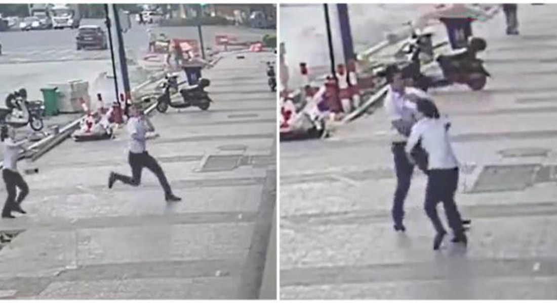 चिनियाँ विदेश मन्त्रालयका प्रवक्ता झाओ लिजियाङले शुक्रबार ट्विटरमा अपलोड गरेको सीसीटीभी फुटेजमा १९ जुलाईमा बाटोमा उभिएर फोनमा कुरा गरिरहेका उनी अनियन्त्रित गतिमा दौडँदै भवनसामु पुगेर माथि हेरेको र लगत्तै खस्दै गरेकी बच्चीलाई दुवै हातले समाएको देखिन्छन् ।