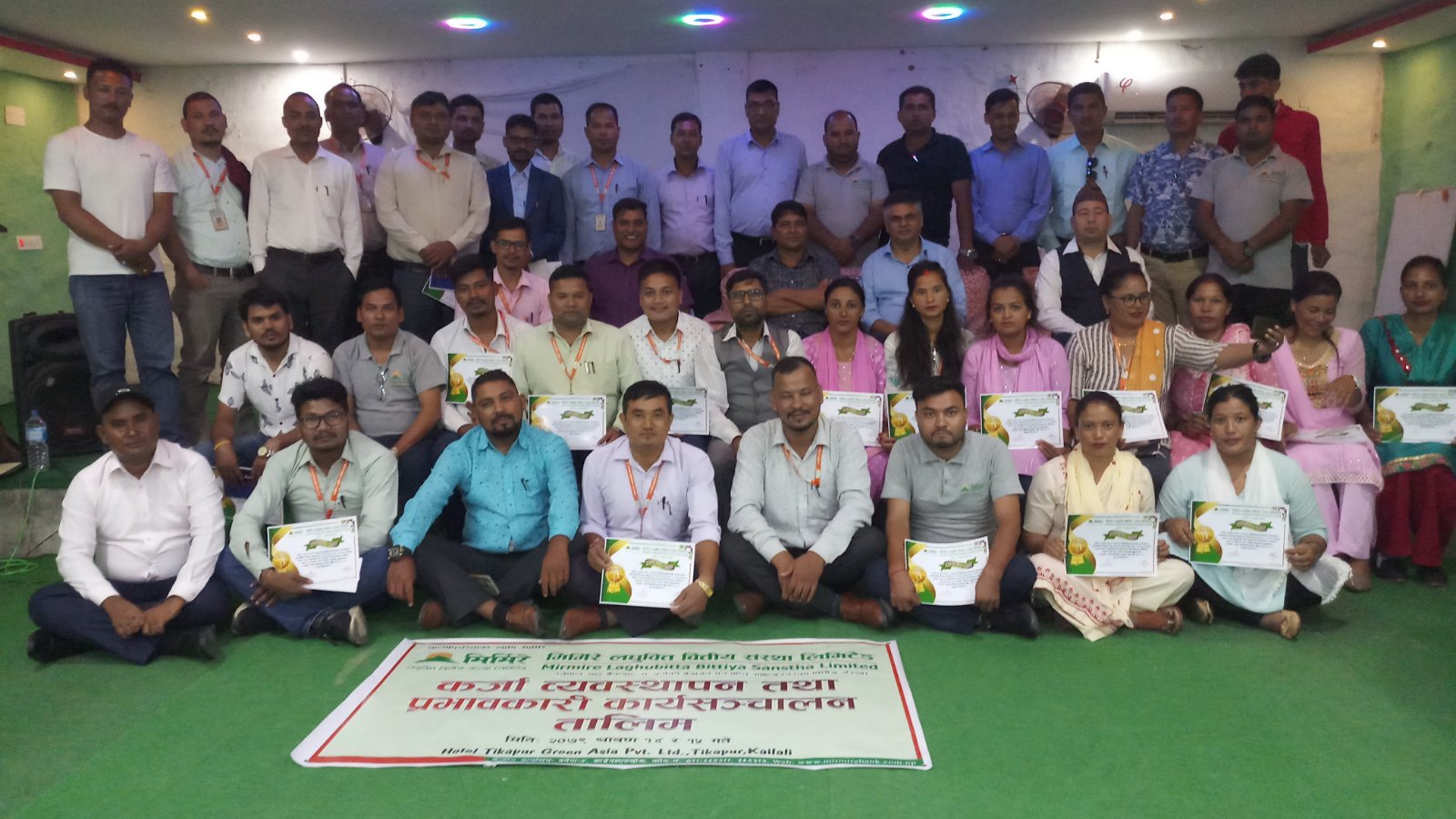 काभ्रेपलाञ्चोकको बनेपामा केन्द्रीय कार्यालय रहेको मिर्मिरे लघुवित्त वित्तीय संस्था लिमिटेडले सुदुरपश्चिम प्रादेशिक कार्यालयको संयोजनमा प्रदेश कार्यालय अन्तर्गतका २५ वटा शाखा प्रमुखहरुलाई टिकापुर कैलाली स्थित होटल ग्रिन एशियामा कर्जा व्यवस्थापन तथा प्रभावकारी कार्य संचालन तालिम दिएको छ । आर्थिक वर्षको सुरुवातबाट नै संस्थाले गुणस्तरीय लघुवित्त कारोवारमा आफ्ना कर्मचारीहरुलाई दक्ष बनाउनको लागि तालिमको आयोजना गरिएको हो ।