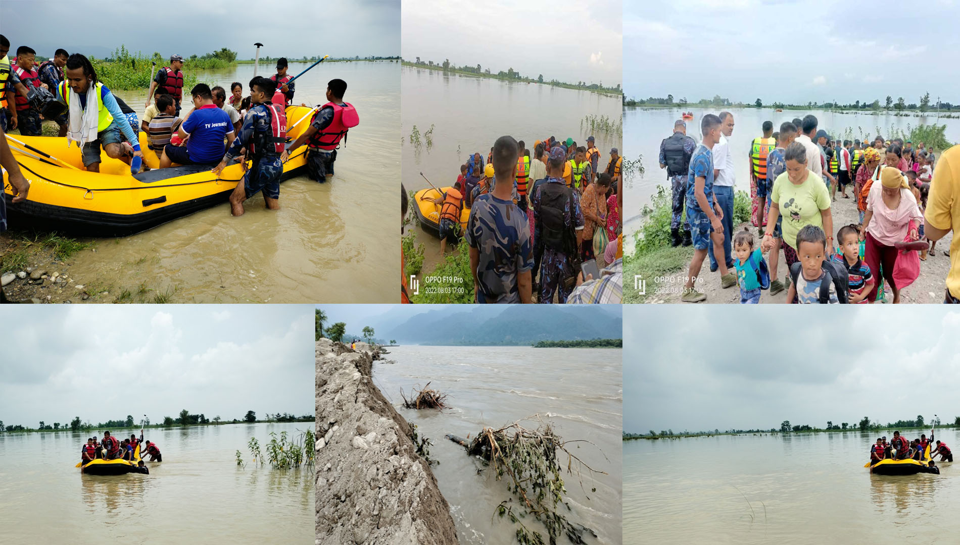 बाढीमा फसेका बेलका नगरपालिका– ३ र बराह क्षेत्र नगरपालिकाका ६ र ९ का २ हजार ४०० घरधुरीलाई सशस्त्र प्रहरी, नेपाल प्रहरी, नेपाली सेना स्थानीयवासीको सहयोगमा ५ वटा बोटबाट उद्धार गरिएको सशस्त्र प्रहरी बल ५ नम्बर गणका गणपति सशस्त्र प्रहरी उपरीक्षक कृष्णराज अधिकारीले जानकारी दिए ।