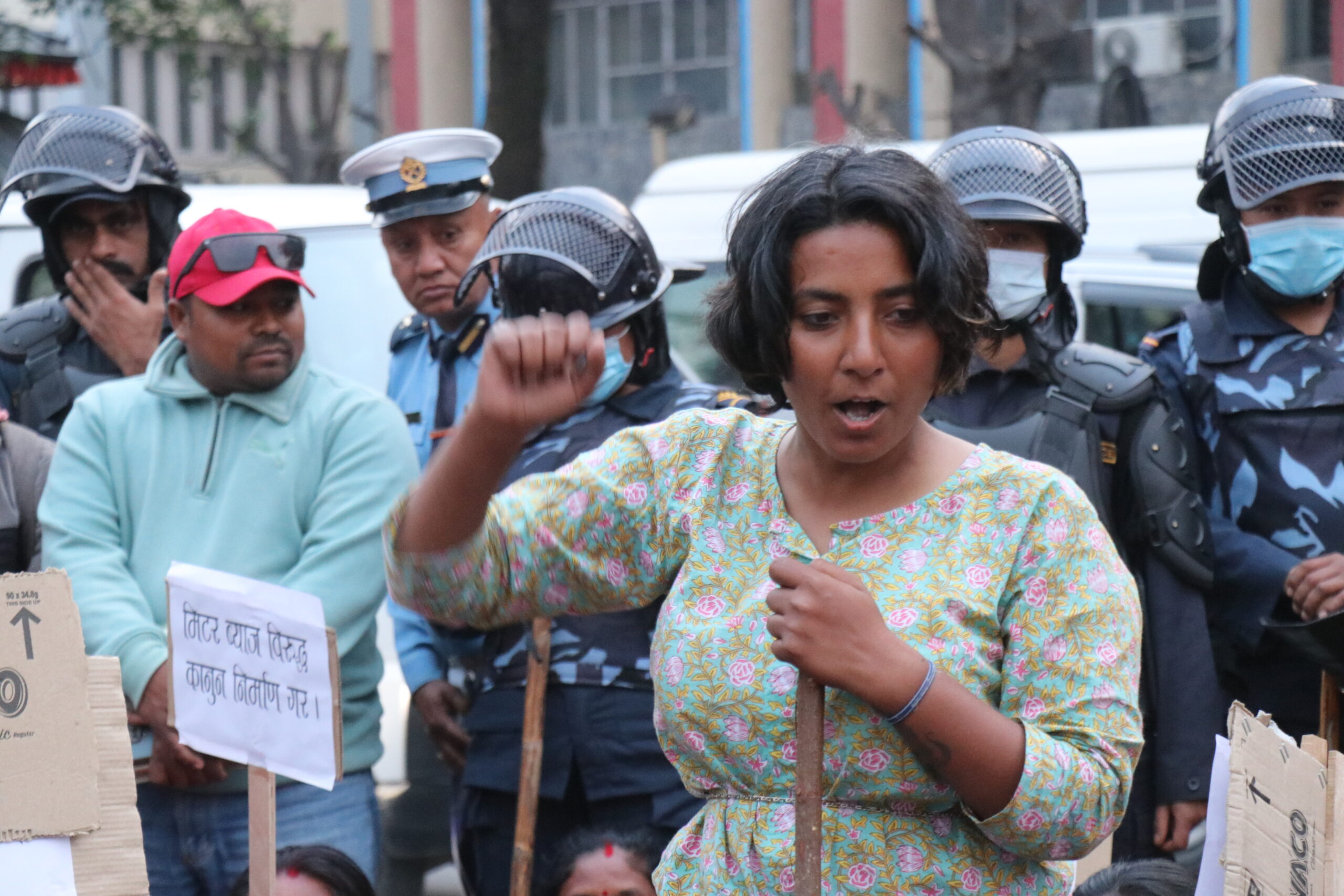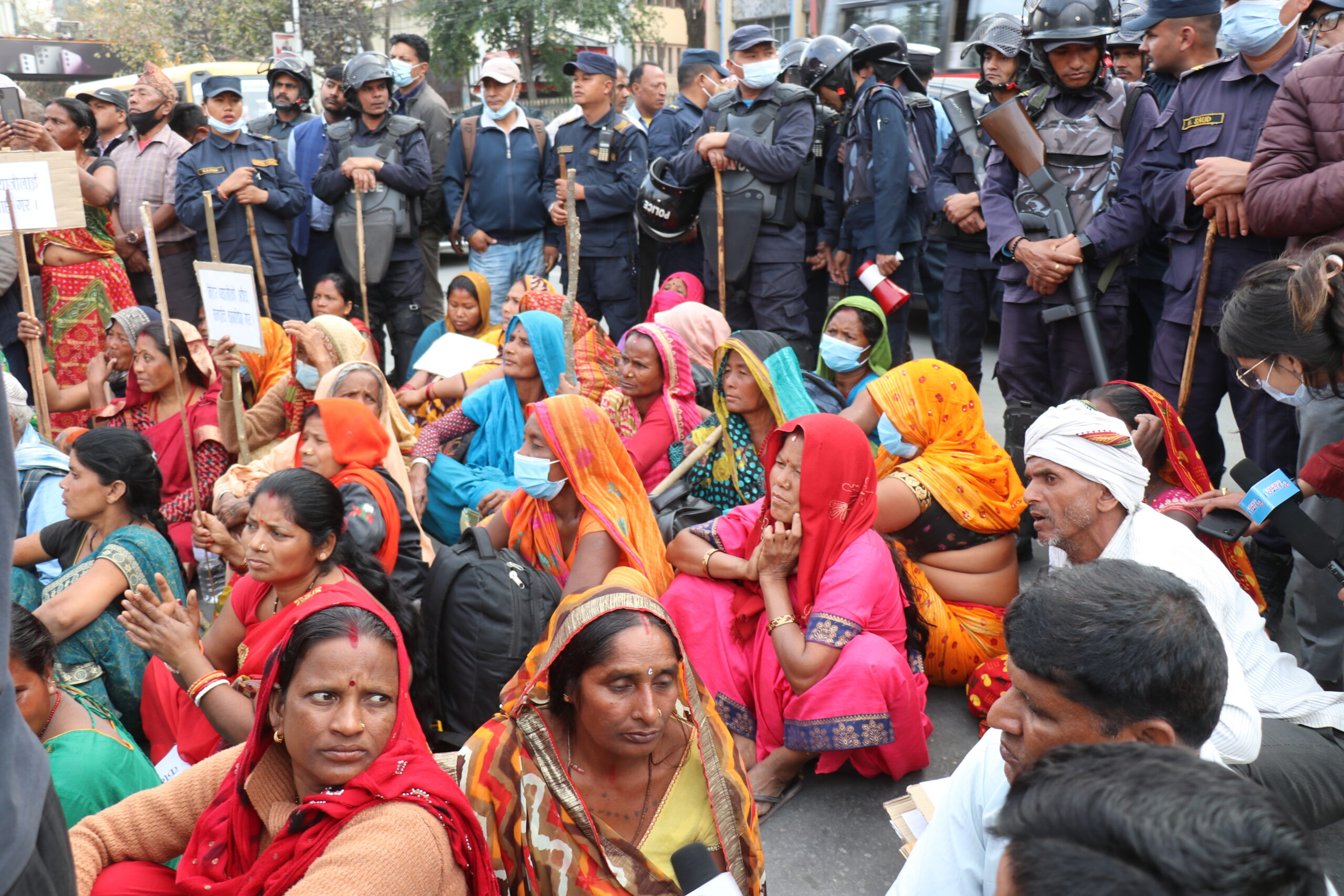 तराईका विभिन्न जिल्लाबाट ११ दिन पैदल हिँडेर काठमाडौं आइपुगेका मिटरब्याज पीडितहरुले खुलामञ्च अगाडि प्रदर्शन गरेका छन् । सोमबार खुलामञ्चभित्र प्रवेश गर्न खोजेका उनीहरूलाई महानगर प्रहरीले रोक्ने क्रममा केही बेर धकेलाधकेलसमेत भएको थियो ।