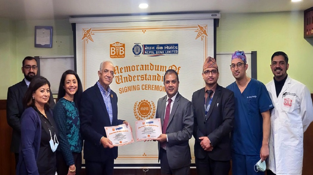 बि।एण्ड बि। हस्पिटल ग्वार्को ललितपुरमा भएको उक्त सम्झौता पत्रमा बि।एण्ड बि।हस्पिटलका तर्फबाट प्रा।डा।अशोक कुमार बांस्कोटा र नेपाल बैंकका प्रमुख कार्यकारी अधिकृत कृण्ण बहादुर अधिकारीले हस्ताक्षर गरेका थिए ।