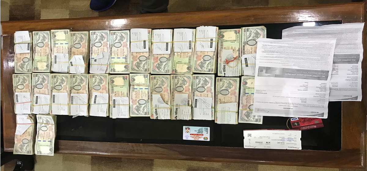 उक्त रकम लिएर सापकोटा श्री एयरलाइन्सको उडानबाट नेपालगञ्जदेखि काठमाडौं जाँदै थिए । सापकोटालाई थप अनुसन्धानका लागि जिल्ला प्रहरी कार्यालयमा राखिएको छ ।
