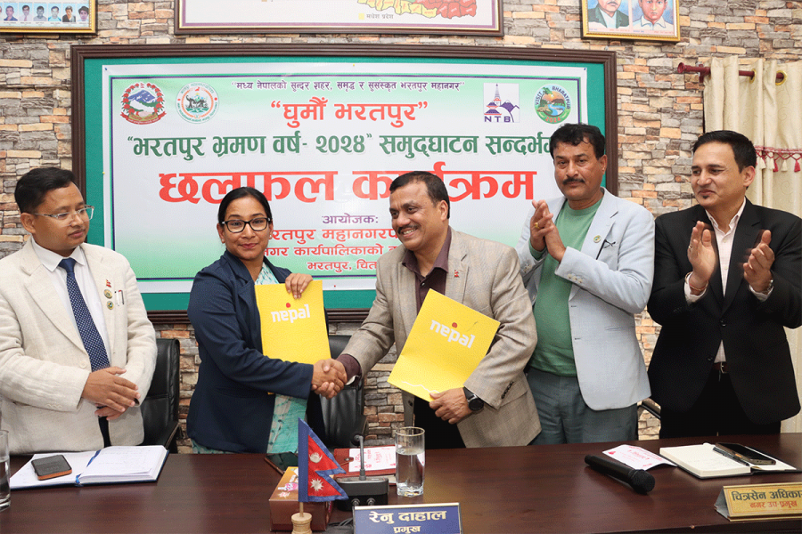 काठमाडौं । नेपाल पर्यटन बोर्ड र भरतपुर महानगरपालिकाबीच भरतपुर भ्रमण वर्ष २०२४ अभियान सञ्चालनको लागि सहकार्य गर्ने सम्झौता भएको छ ।