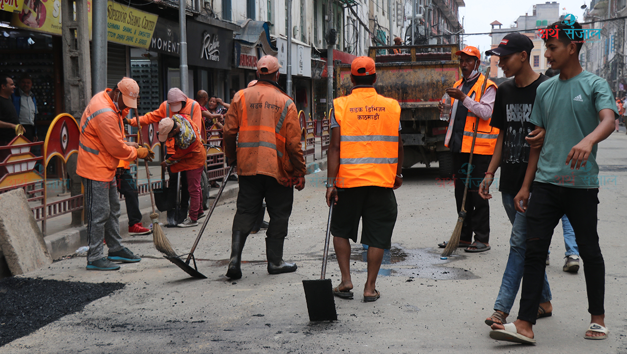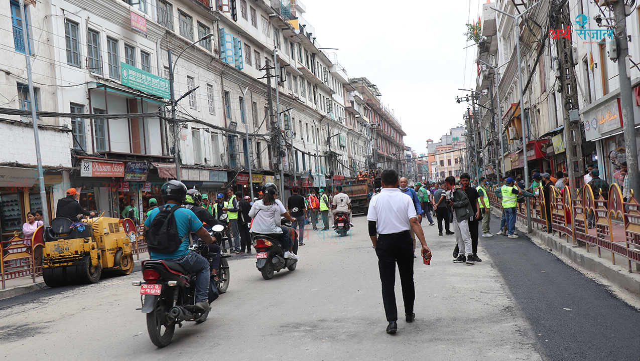 काठमाडौं । काठमाडौं महानगरपालिकाले फुटपाथ बढाउन भत्काएको न्यूरोडको पिच सडक विभागले टालेको छ । मेयर बालेन शाहको निर्देशनमा जेठ १२ गते इन्द्रचोकदेखि जुद्धशालिकतर्फको विशाल बजारअगाडि पीच काटिएको थियो ।
